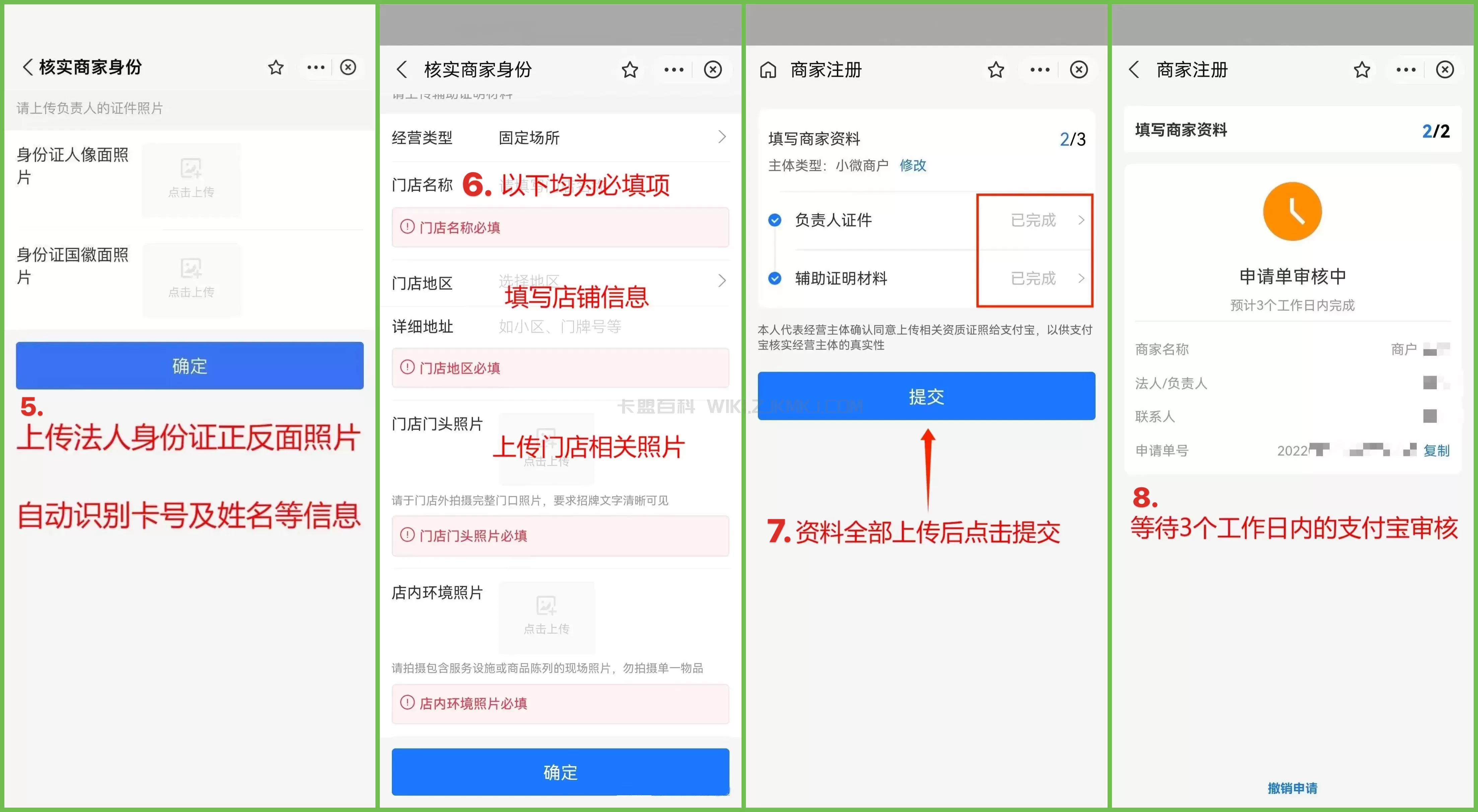 提交后状态变为待审核,1个工作日内支付宝会推送审核结果