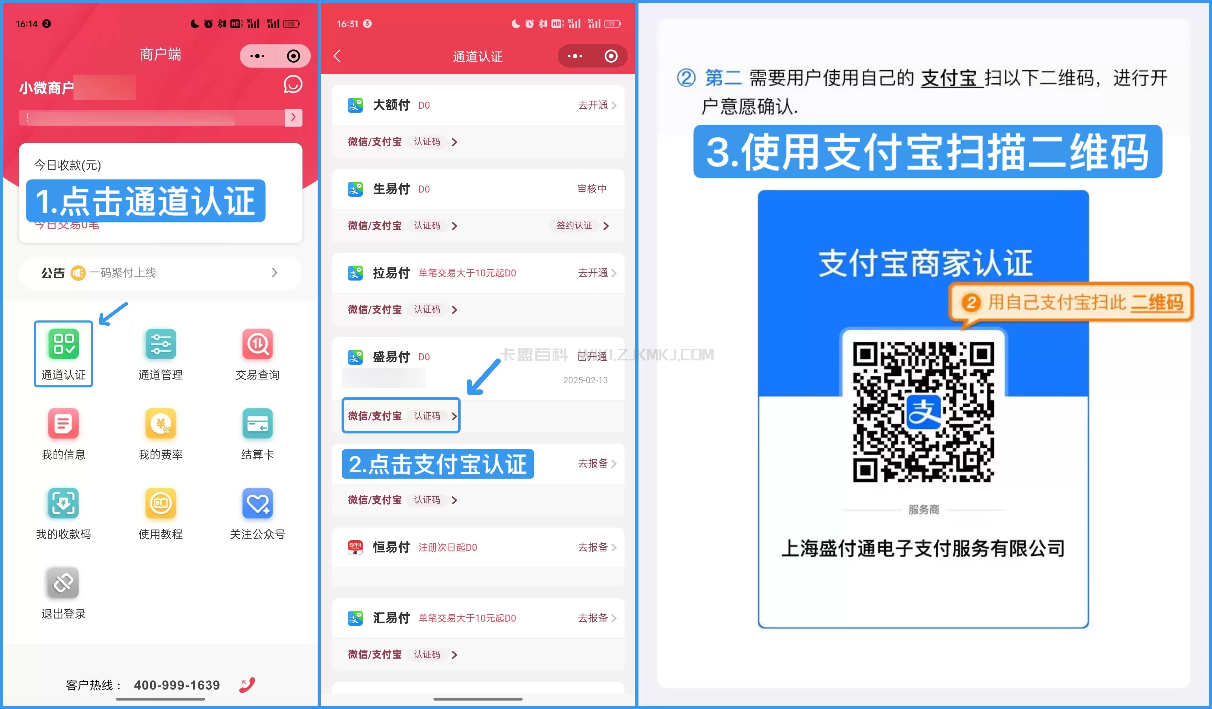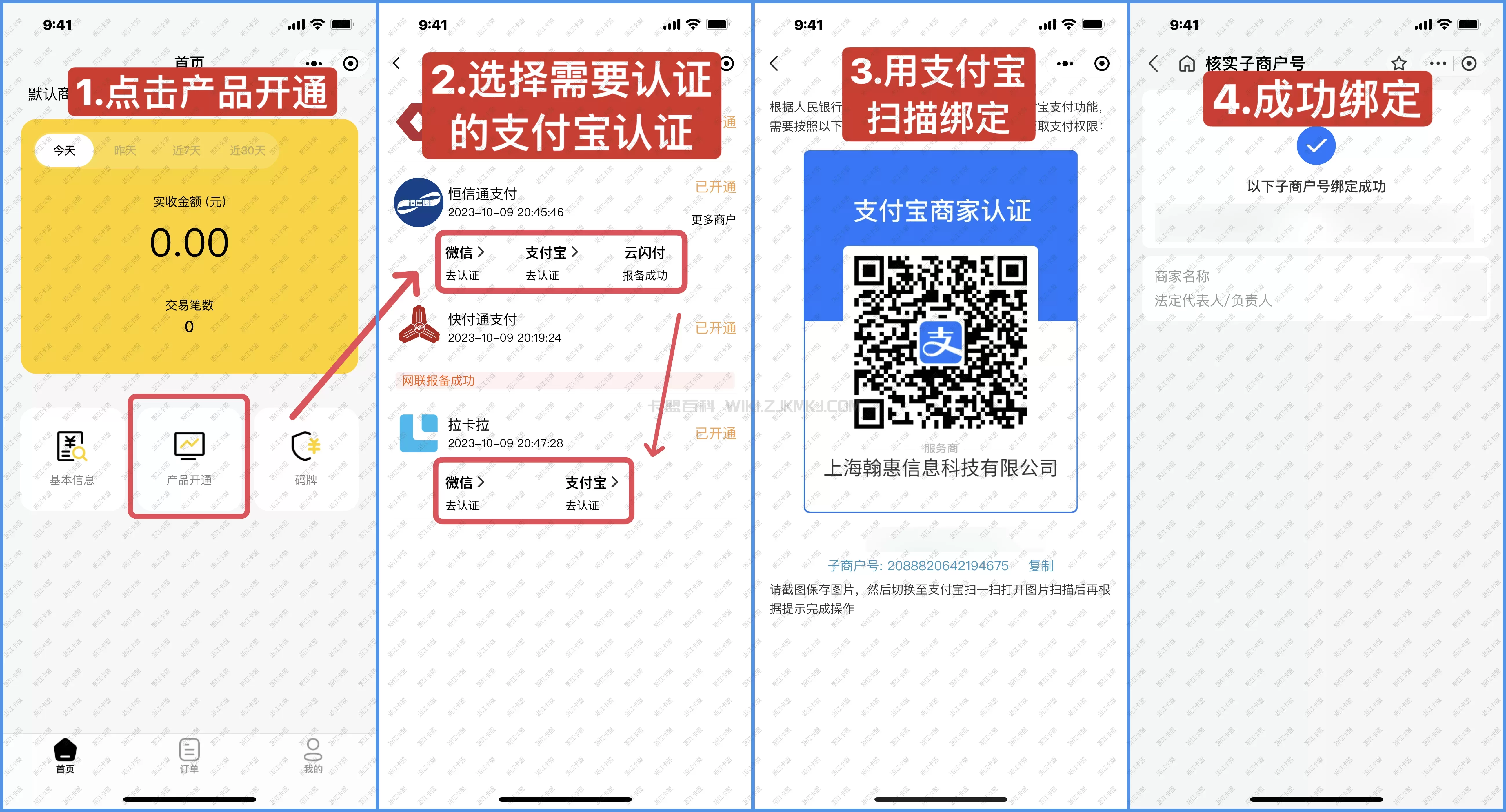 通道认证-支付宝认证码-支付宝扫描下方二维码-查看商户-选择已核实的子商户号-进行认证商户