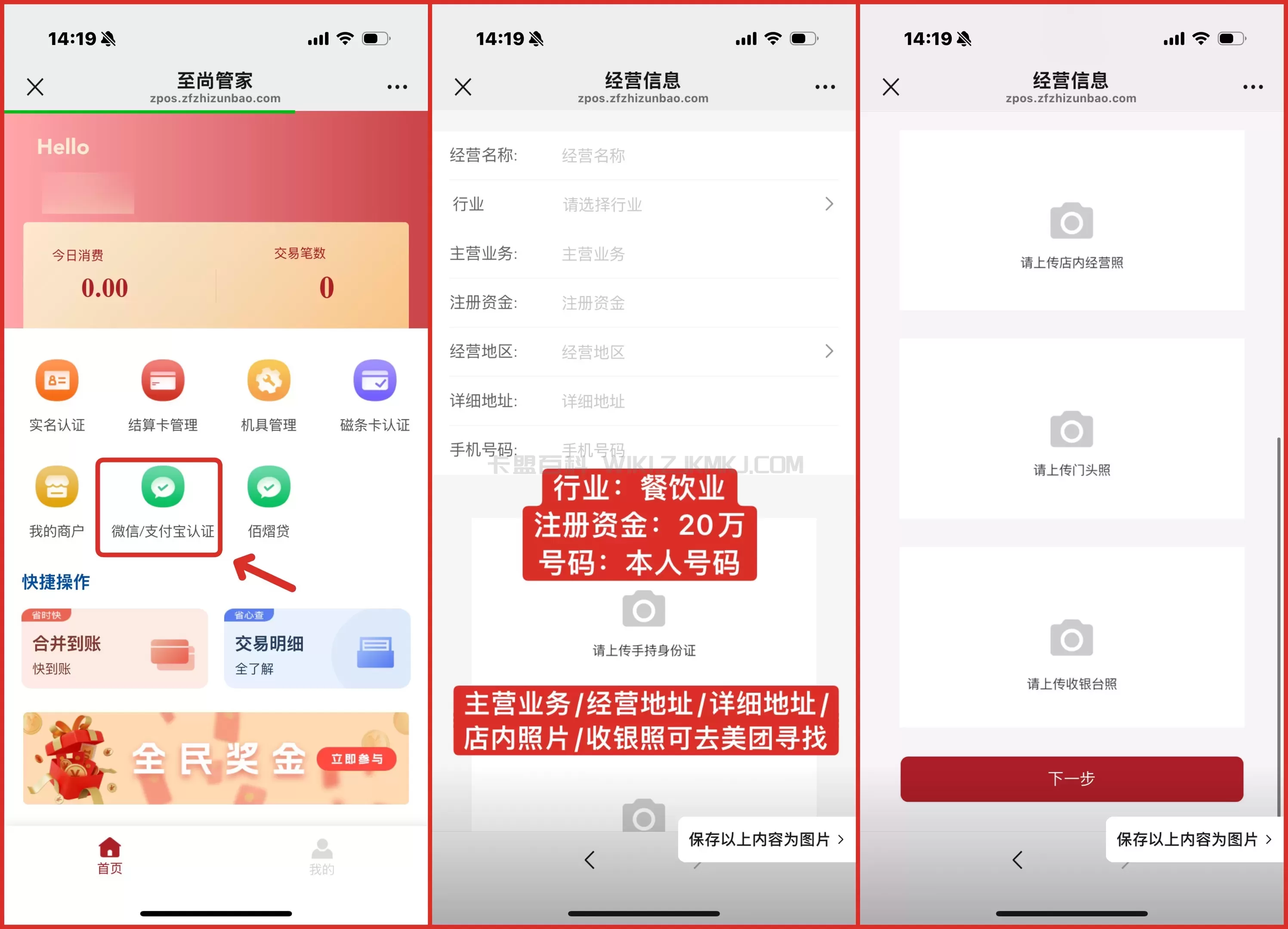 星驿付小账本小程序-我的-我的商户-微信认证&支付宝认证