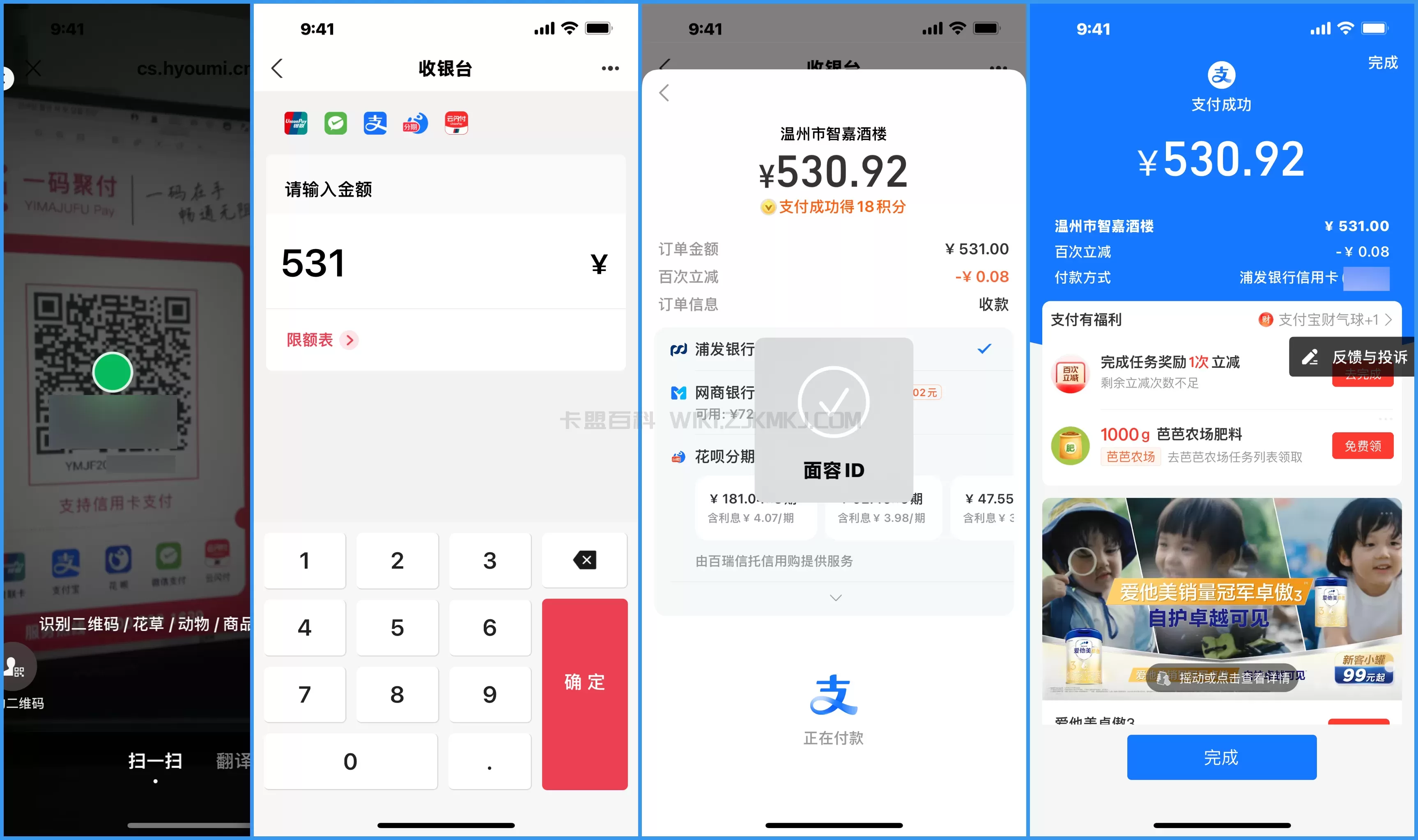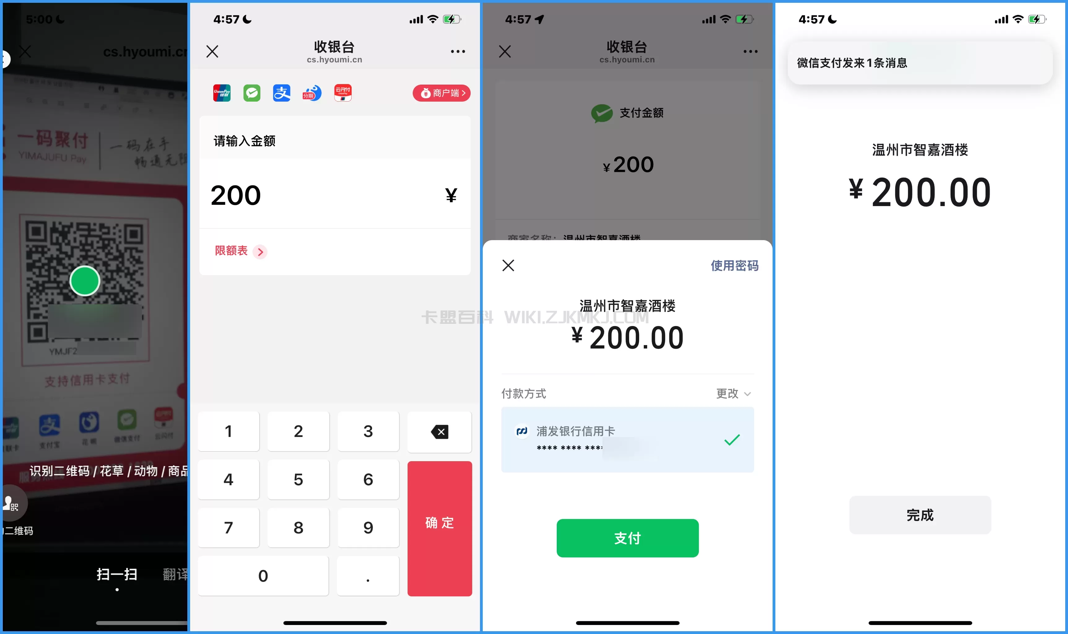 三、扫码交易属于附带功能,特别是支付宝微信,目前支付宝/微信全面严控,与机器/用户/玩法都无关,不存在无风控随便刷的路子,机器本身支持扫码不代表支付宝微信都能正常使用信用卡付款,如出现无法选择信用卡/支付风控/等问题属于正常行为,与机器本身刷卡功能无关,不作为机器使用问题之一。